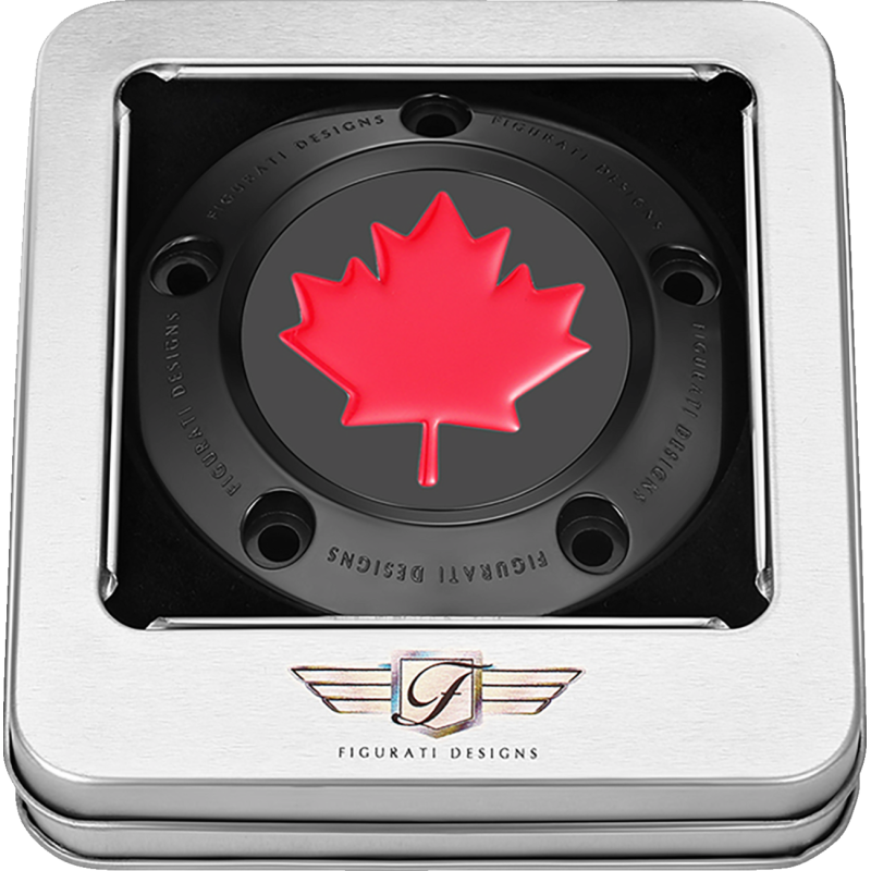 RED MAPLE LEAF FRONT AXLE NUT COVER BLACK