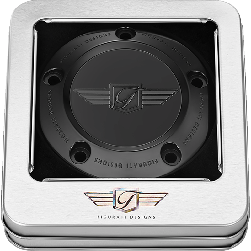 TIMING COVER BLACK WITH FIGURATI DESIGNS LOGO, 5 HOLE