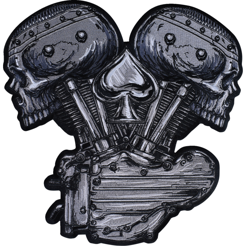 Metal and Mayhem V-Twin Skull Embroidered Patch - Large